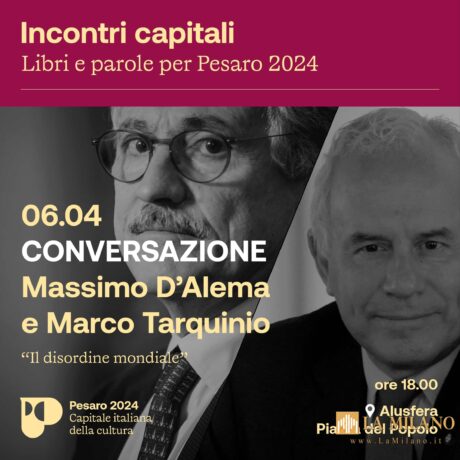 Pesaro: sabato 6 aprile la conversazione tra Massimo D’alema e Marco Tarquinio su ‘Il disordine mondiale’ Proseguono gli ‘Incontri capitali‘ di Pesaro, Capitale italiana della cultura: ‘Il disordine mondiale‘ sarà il tema della conversazione tra Massimo D’Alema e Marco Tarquinio precedentemente rinviata e ora in programma sabato 6 aprile nell’Alusfera di piazza del Popolo (ore 18.00). Un dialogo che darà […]