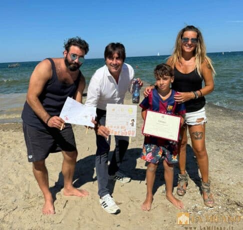Pesaro: il sindaco Andrea Biancani consegna il Plauso della città a Giona, un bambino di 8 anni che accoglie le cicche di sigarette dalla spiaggia